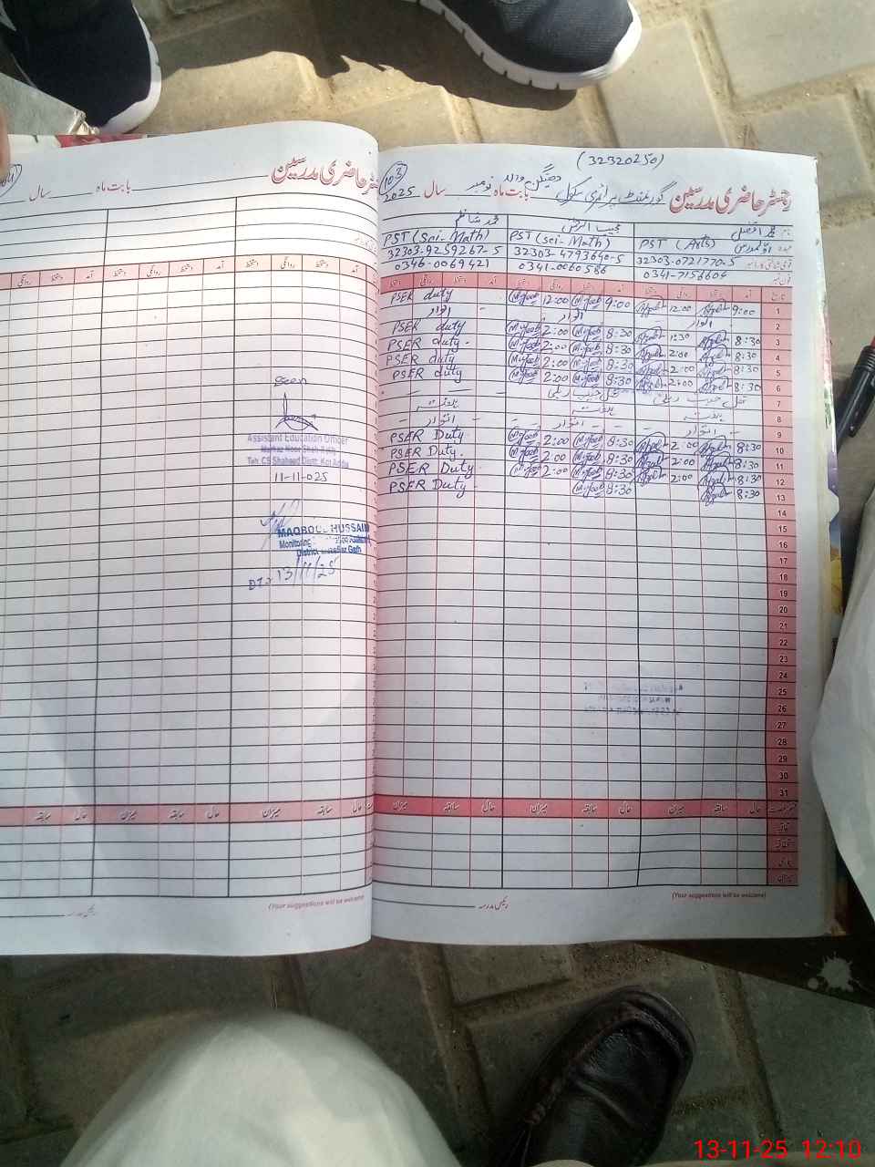 | Name: M.**** Designation: (School Headmaster's/Headmistress's) PST Phone/Cell Number: 03**** |