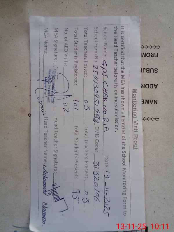 | EMIS Code: 31320106 | Name of School: GPS CHAK 21/A | |||