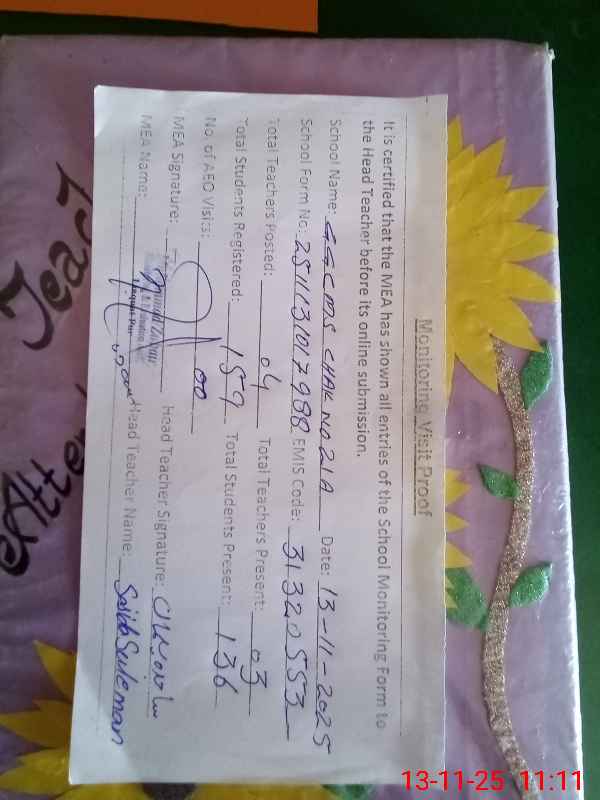 | EMIS Code: 31320553 | Name of School: GGCMS CHAK NO. 21/A | |||