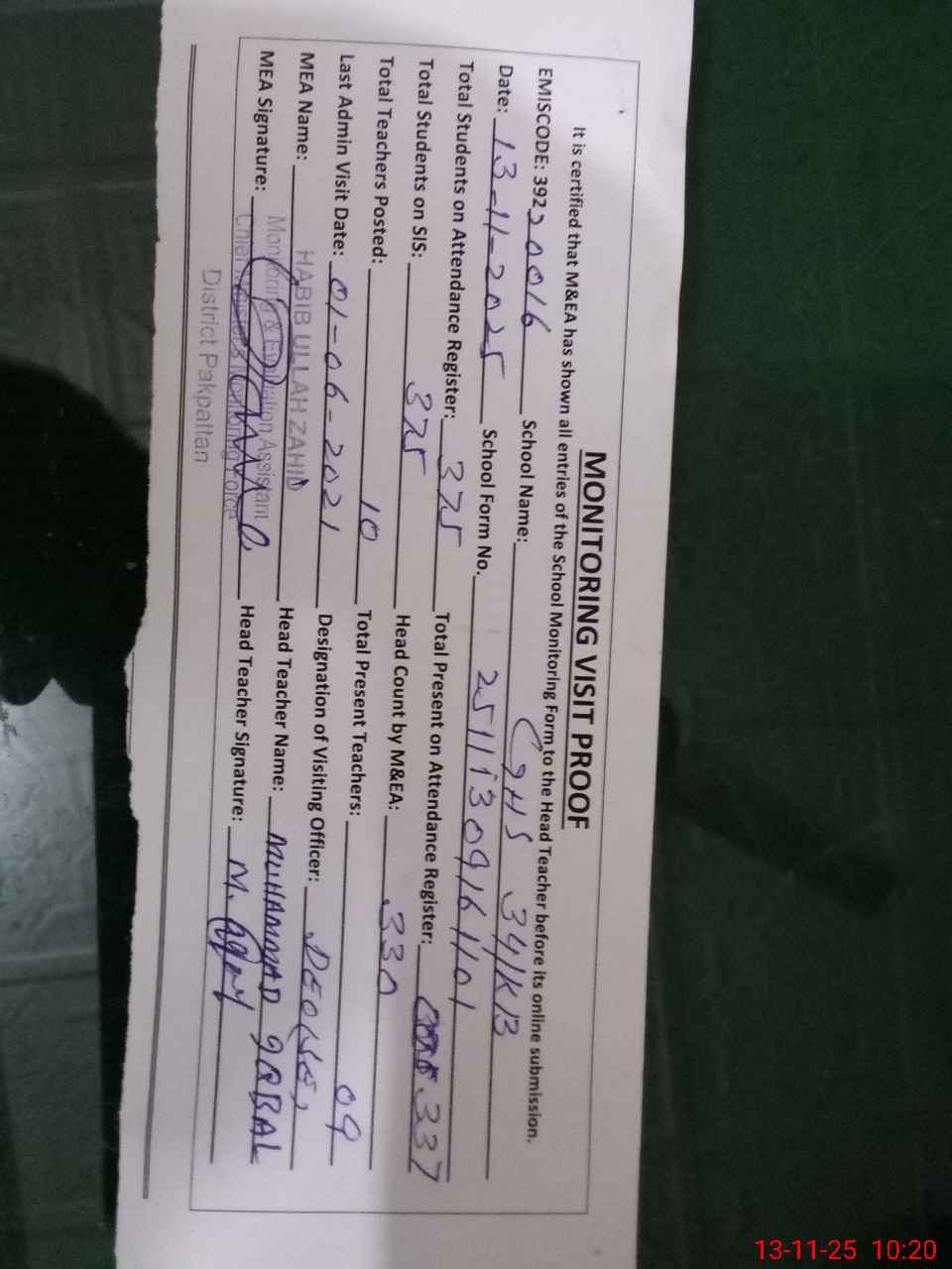 | EMIS Code: 39220016 | Name of School: GHS CHAK NO.34/KB | |||