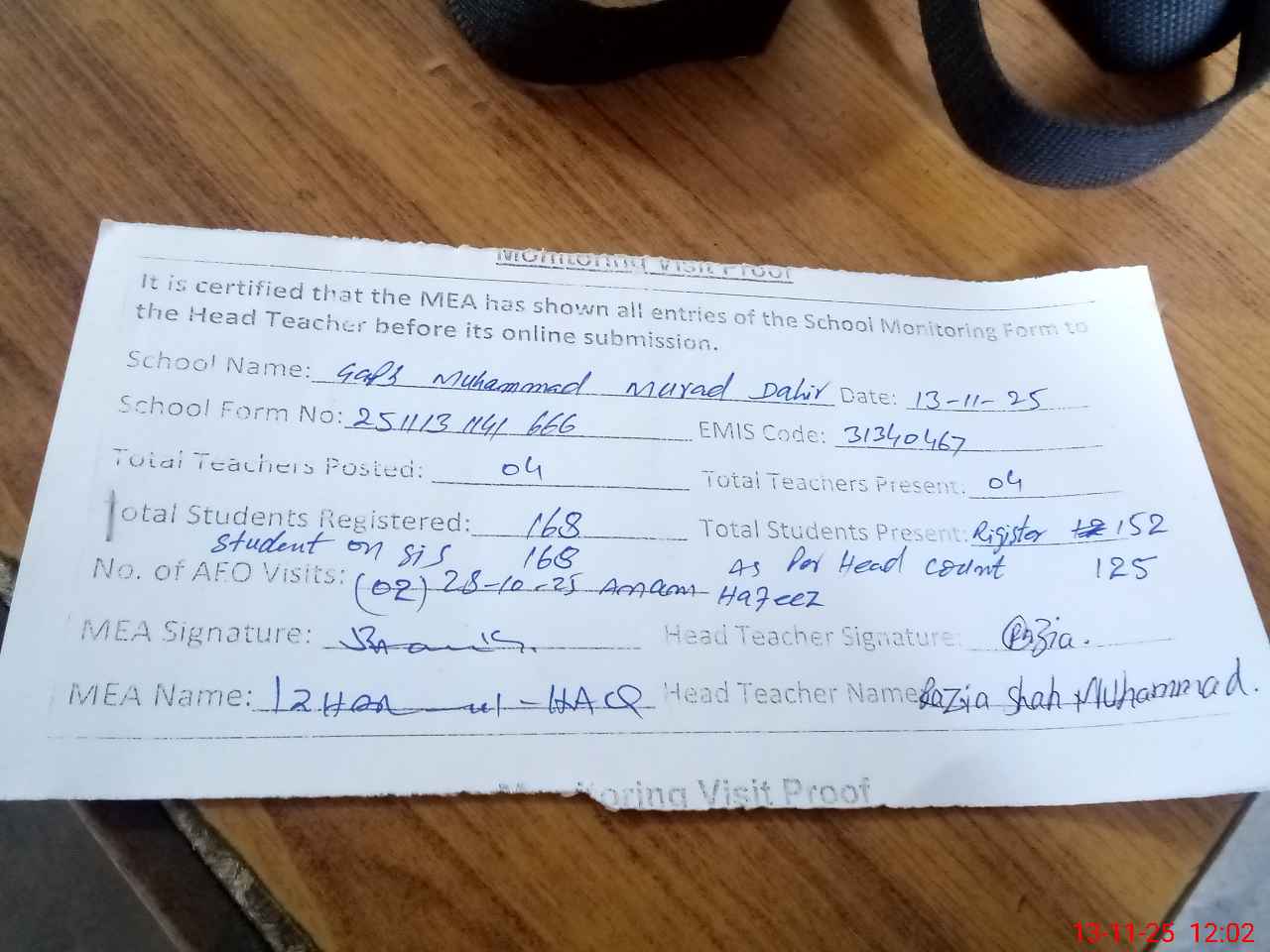 | EMIS Code: 31340467 | Name of School: GGPS MUHAMMAD MURAD DAHAR | |||