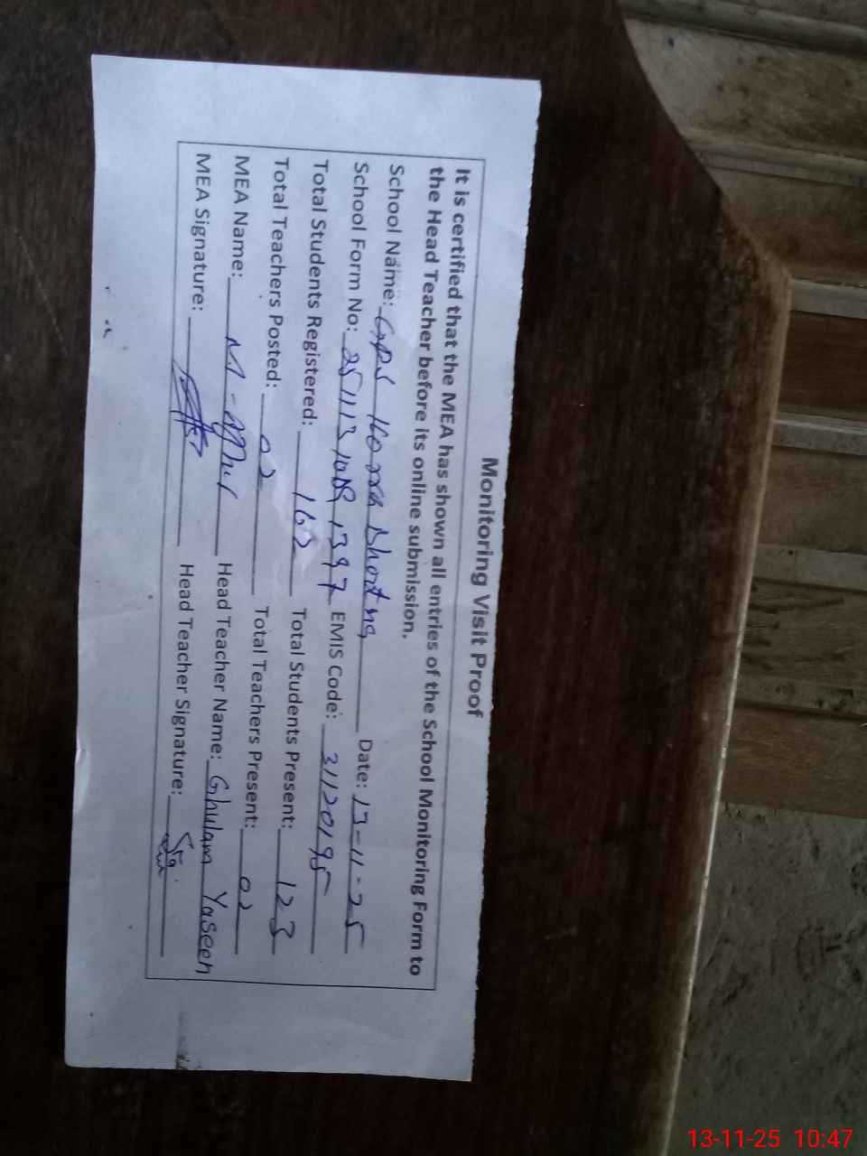 | EMIS Code: 31120195 | Name of School: GPS KORRA BHOOTNA | |||