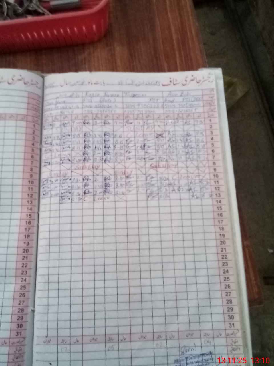| CNIC | Full Name | Designation | R/C | Absence During Last Calender Month |