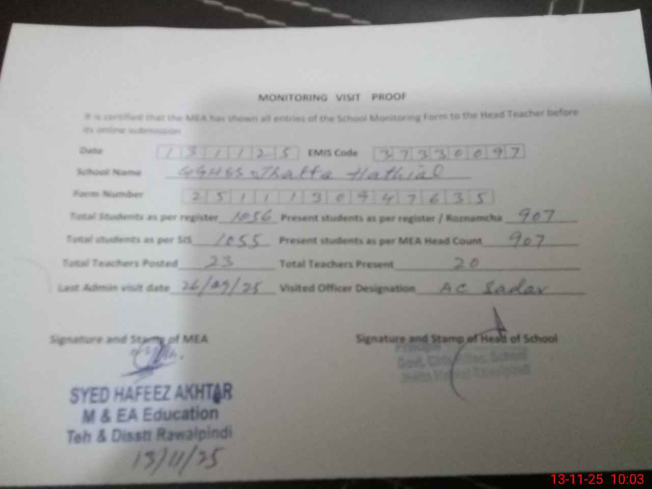 | EMIS Code: 37330097 | Name of School: GGHSS JHATTA HATHIAL | |||