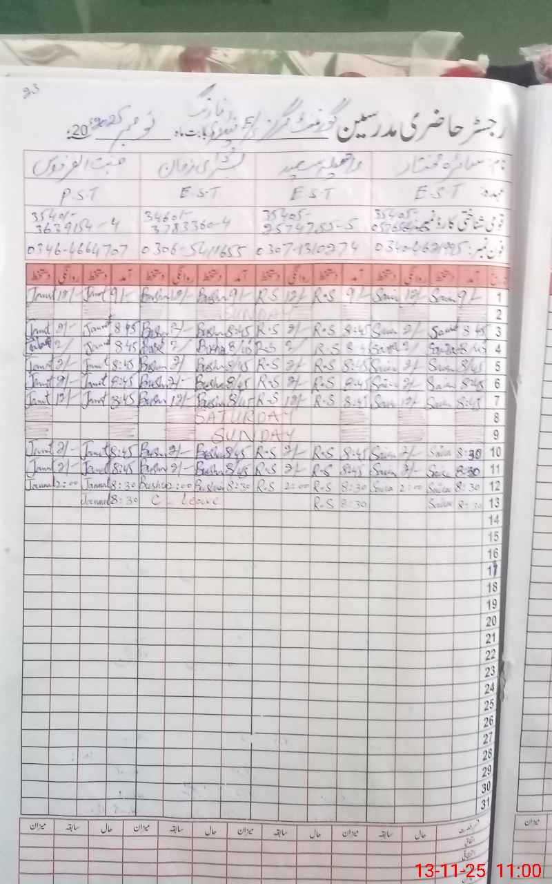 | Name: Bu**** Za**** Designation: (School Headmaster's/Headmistress's) EST Phone/Cell Number: 03**** |