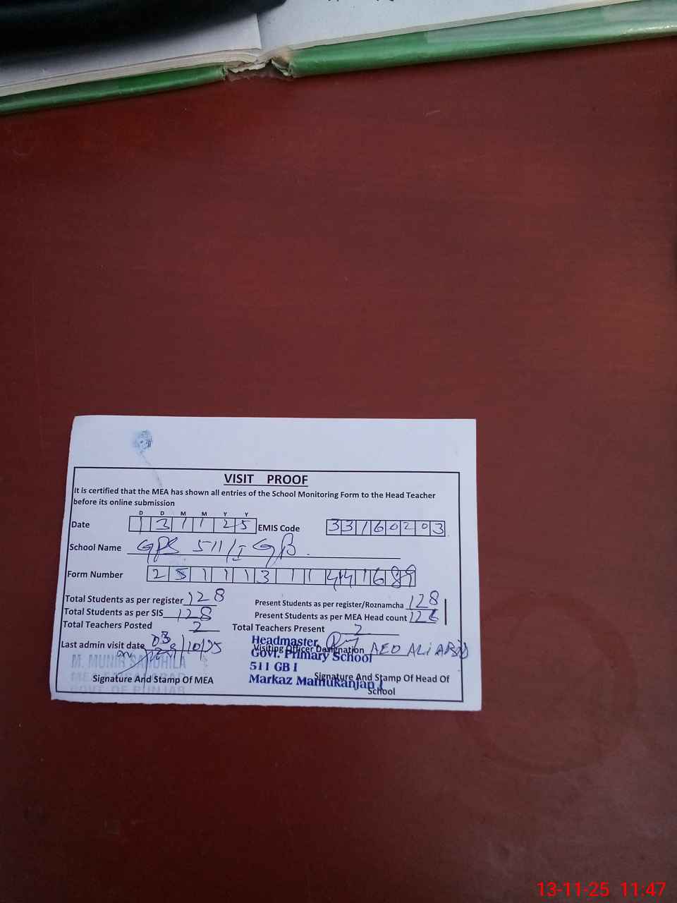 | EMIS Code: 33160203 | Name of School: GPS CHAK 511 GB I MAMUNKANJAN | |||