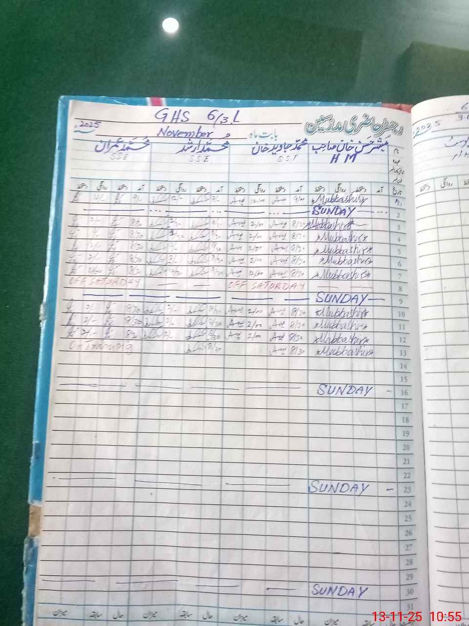 | CNIC | Full Name | Designation | R/C | Absence During Last Calender Month |