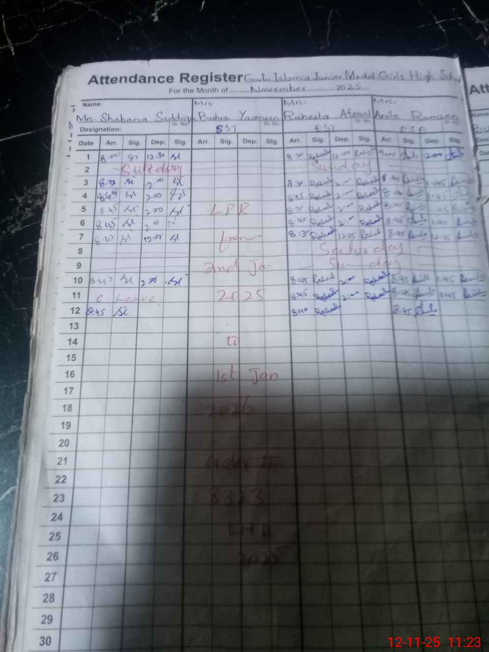 | CNIC | Full Name | Designation | R/C | Absence During Last Calender Month |