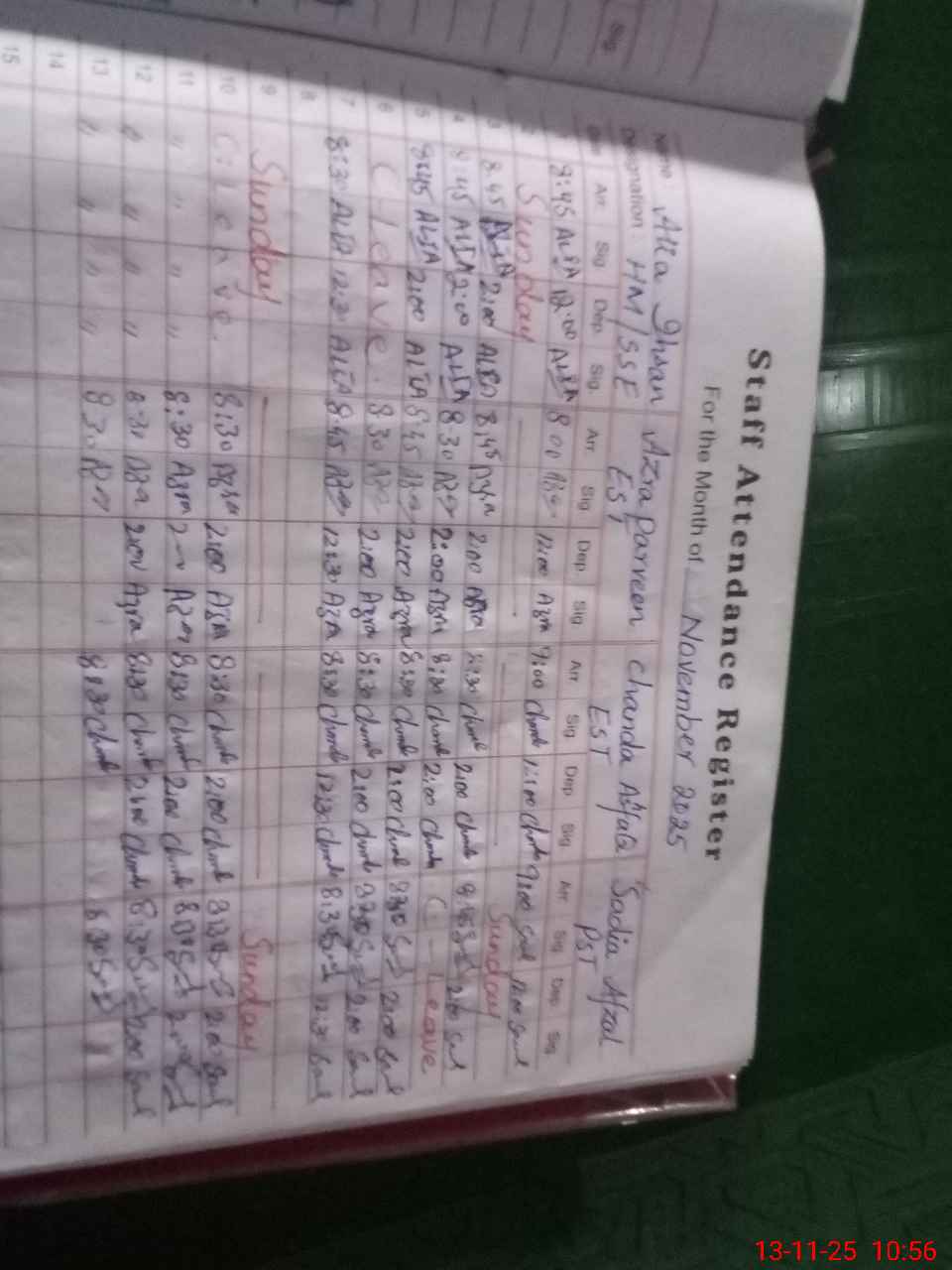 | CNIC | Full Name | Designation | R/C | Absence During Last Calender Month |