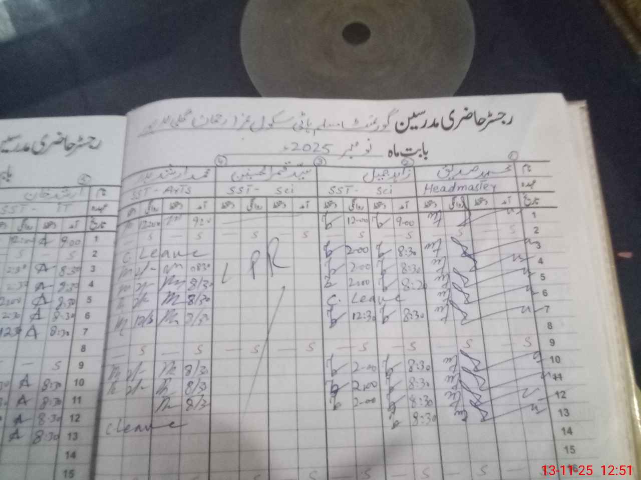 | CNIC | Full Name | Designation | R/C | Absence During Last Calender Month |