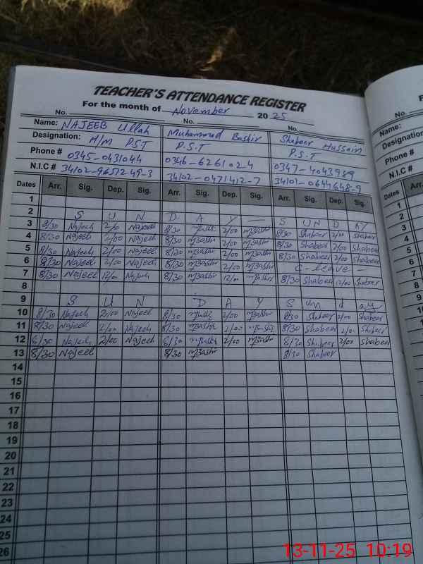 | Name: NA**** UL**** Designation: (School Headmaster's/Headmistress's) PST/PTC/JV Phone/Cell Number: 03**** |