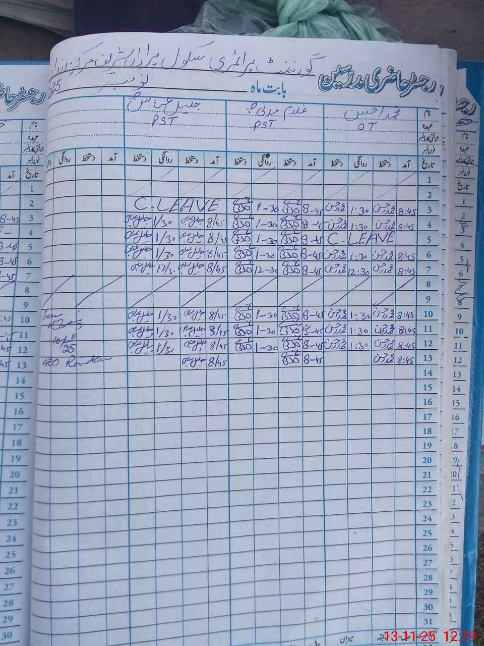| CNIC | Full Name | Designation | R/C | Absence During Last Calender Month |