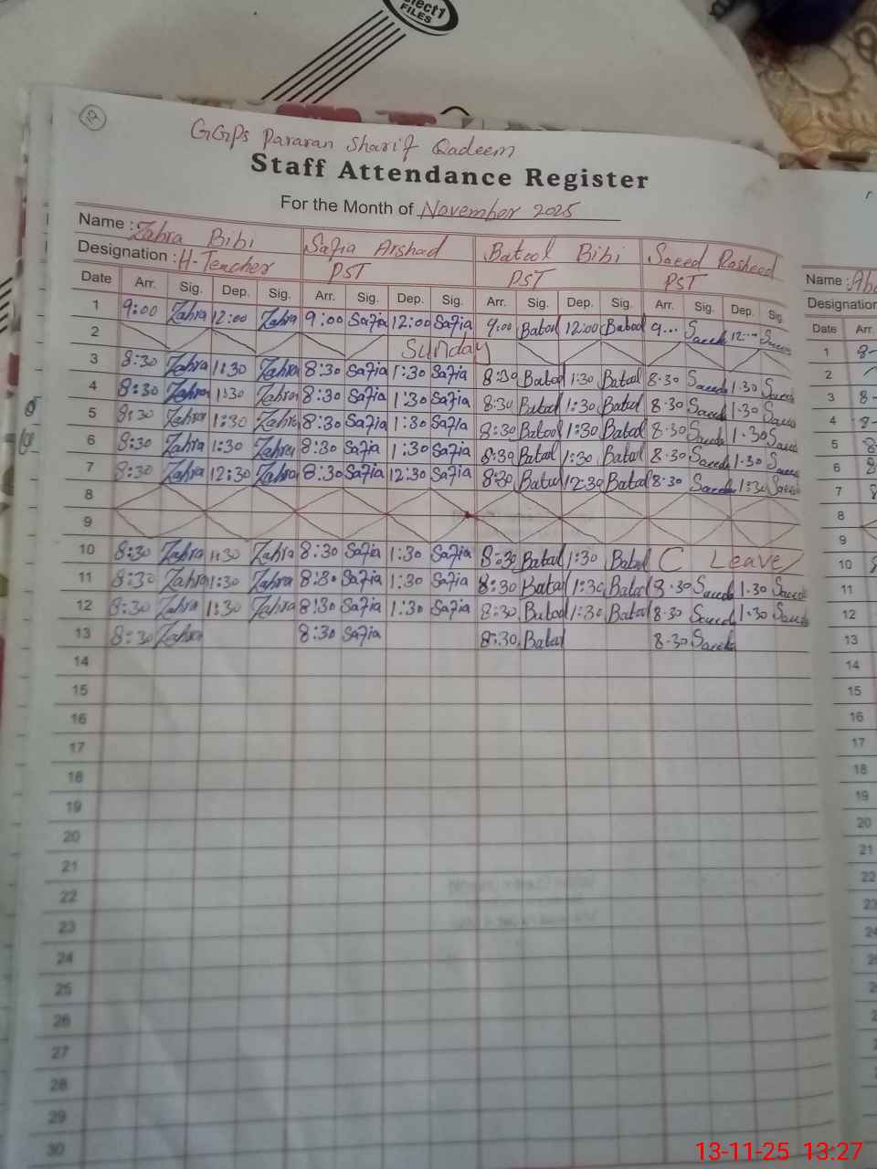 | CNIC | Full Name | Designation | R/C | Absence During Last Calender Month |