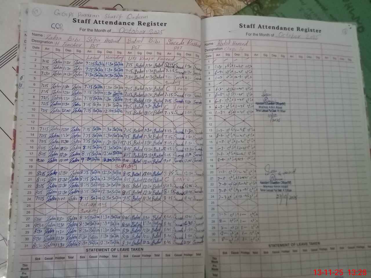 | Name: ZA**** BI**** Designation: (School Headmaster's/Headmistress's) PST/PTC/JV Phone/Cell Number: 03**** |