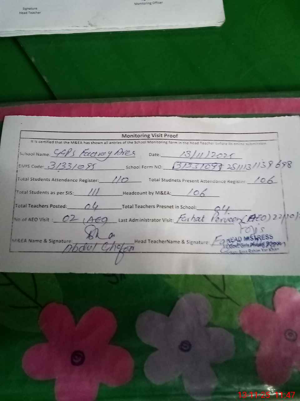 | EMIS Code: 31331095 | Name of School: GGPS MC FACTORY AREA | |||