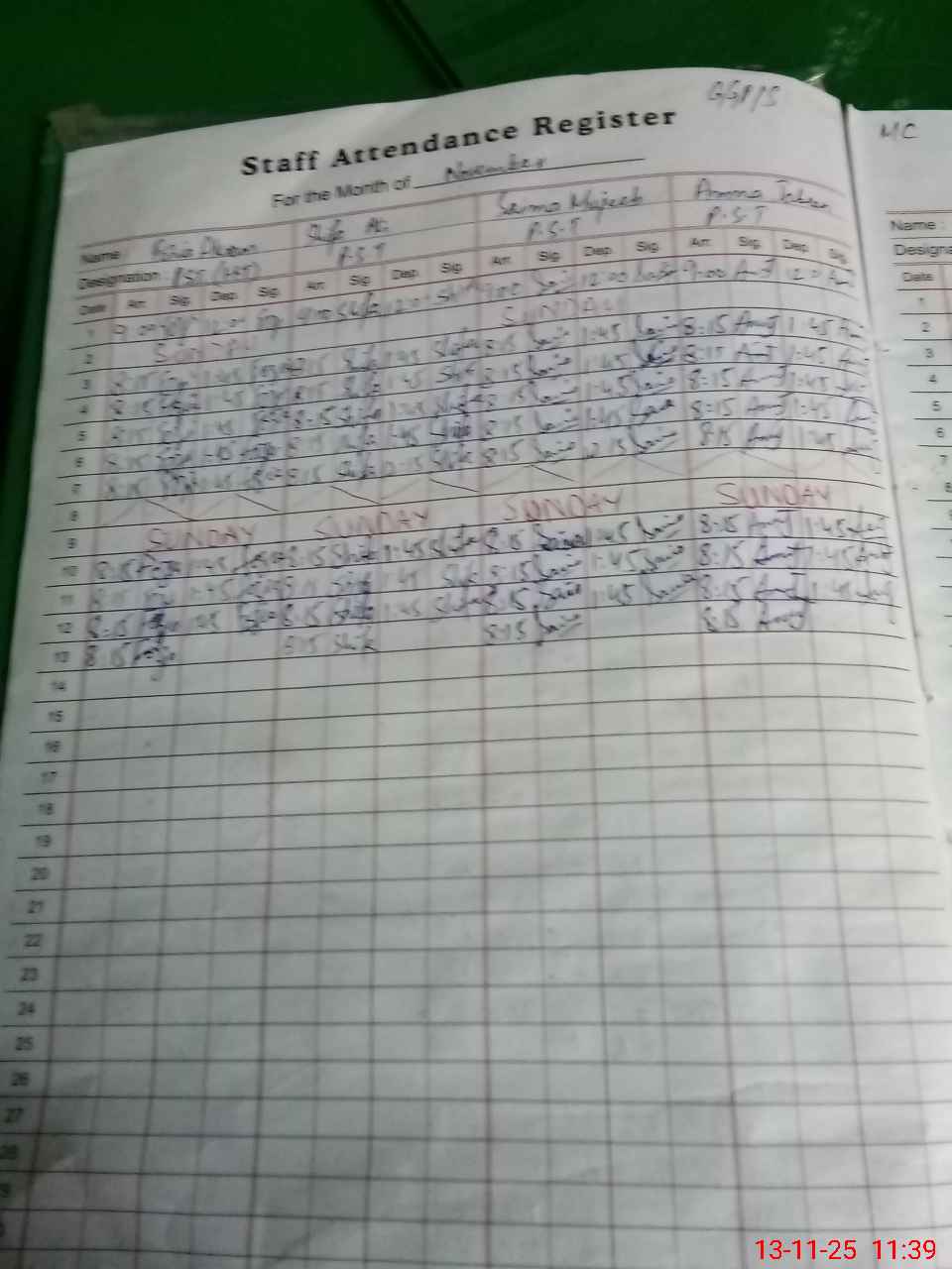 | 31**** | Ab**** Sh**** | CHOWKIDAR | Regular | 0 | 0 | 0 | 0 | 0 | 0 | 0 | 0 | 0 | Casual |