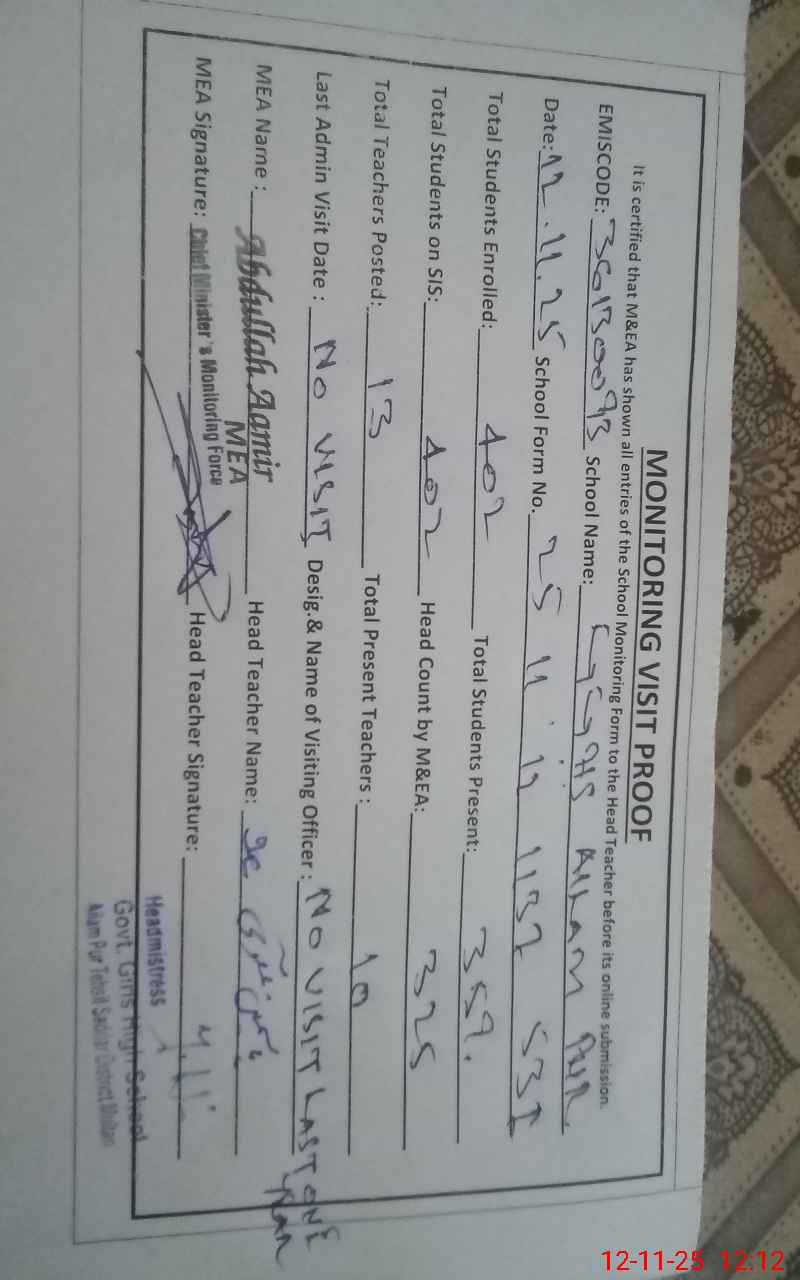 | EMIS Code: 36130093 | Name of School: GGHS AILAM PUR | |||