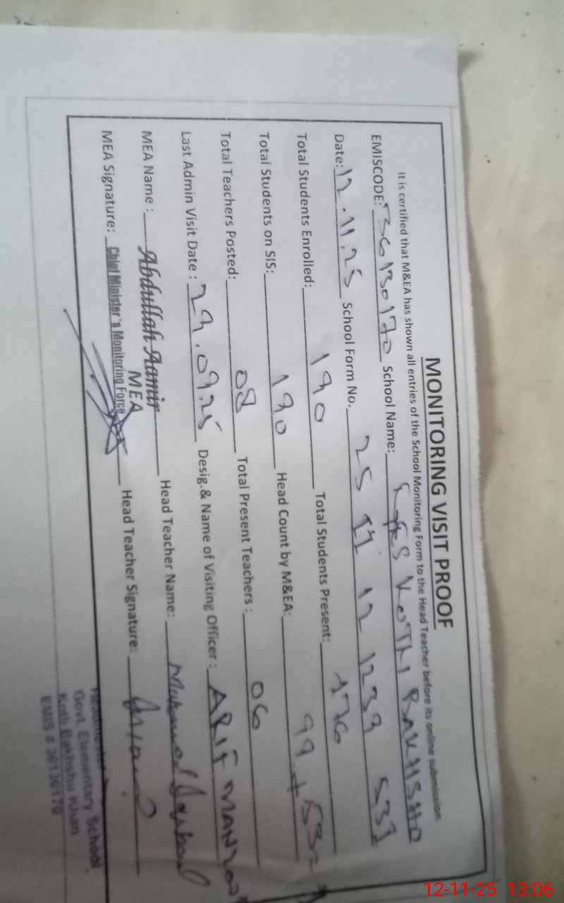 | EMIS Code: 36130170 | Name of School: GES KOTLI BAKHSHO KHAN MUZA KOTLI BAKHSHO KHAN | |||