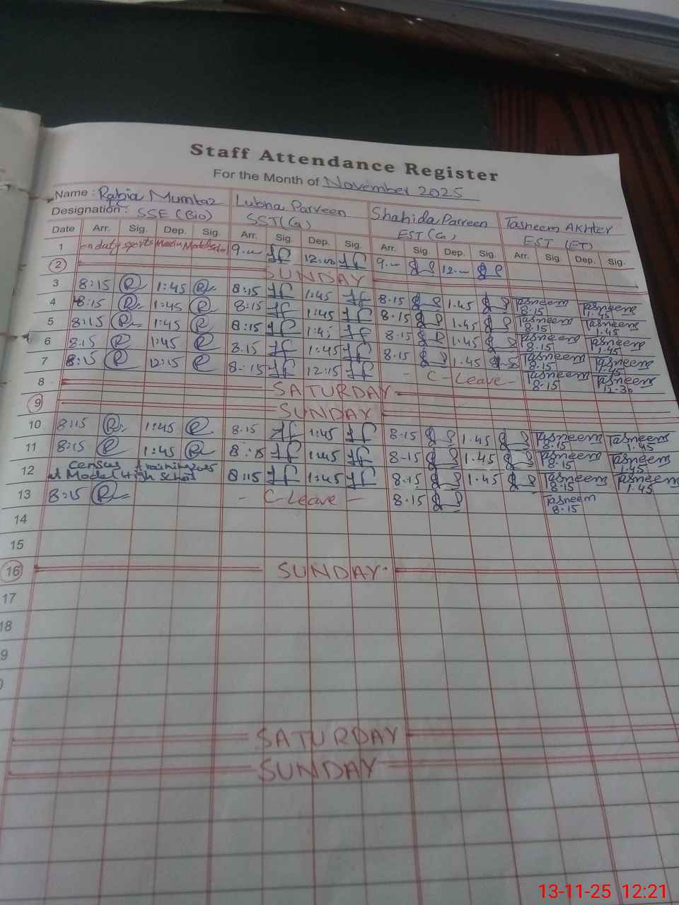 | Total no. of Classrooms: 24 No. of Classrooms Used for Teaching: 12 No. of Classrooms Storing Old Furniture, FTBs, etc: 0Comments if Any: NSB Cash book not available in school Record not found Boundary wall repair needed and has only 04 feet height 10 room are dangerous 150 Students without furniture |