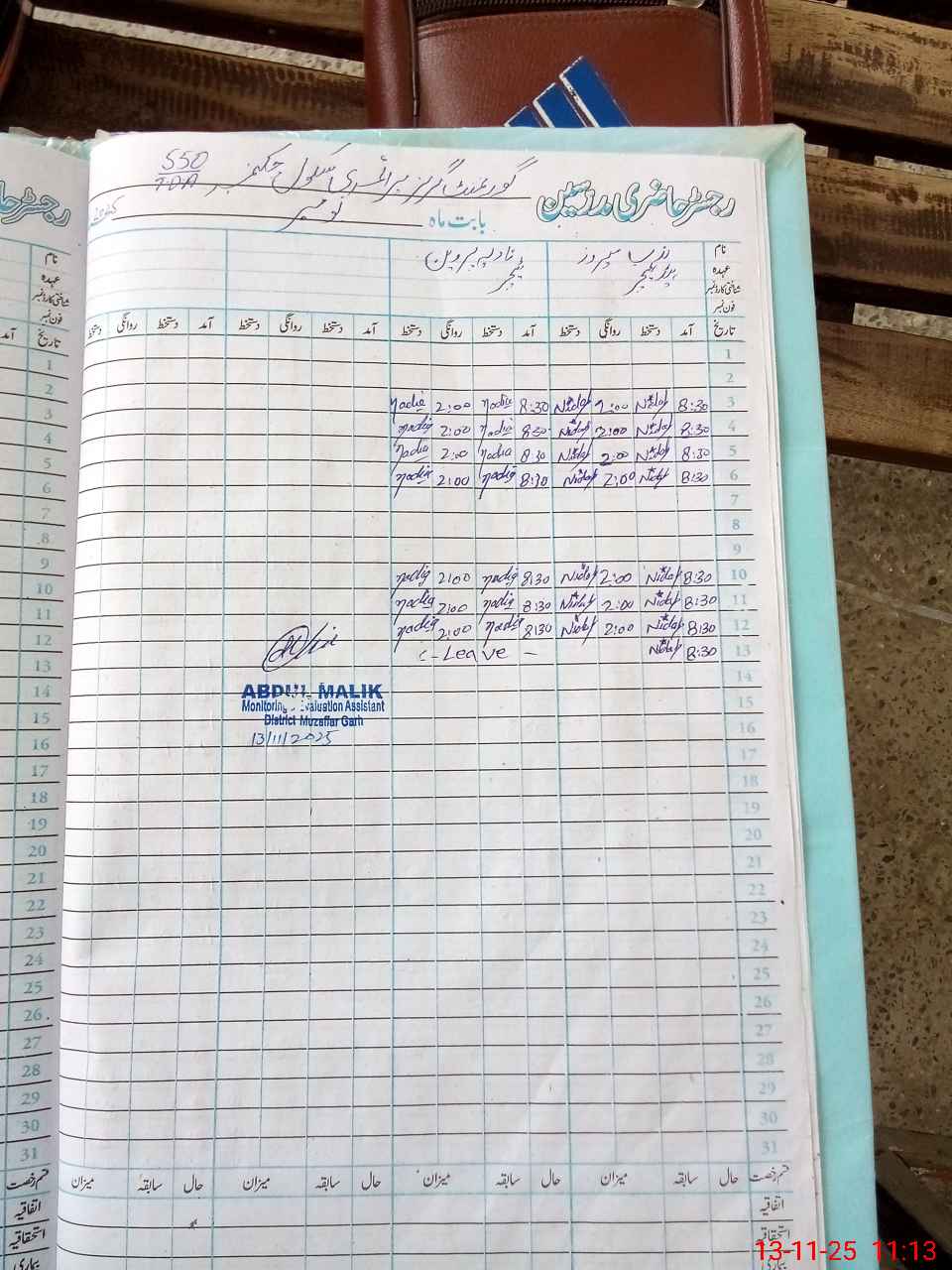 | CNIC | Full Name | Designation | R/C | Absence During Last Calender Month |