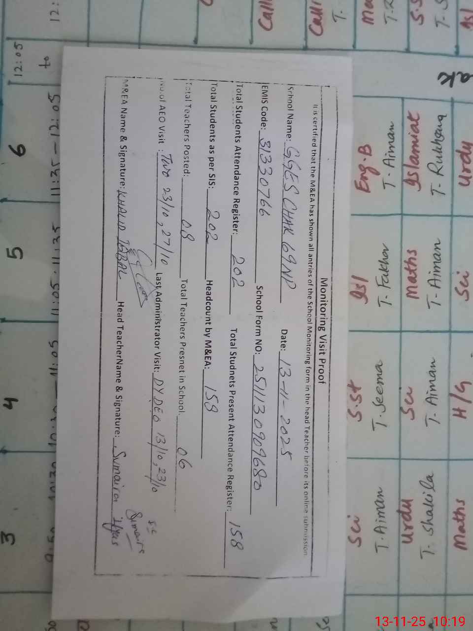 | EMIS Code: 31330766 | Name of School: GGES CHAK 69/NP | |||