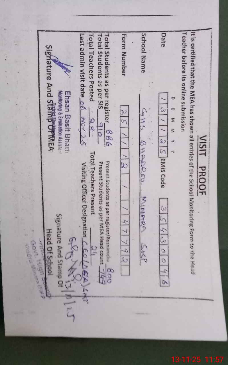 | EMIS Code: 35430046 | Name of School: GHS BHADROO MINARA (SKP) | |||