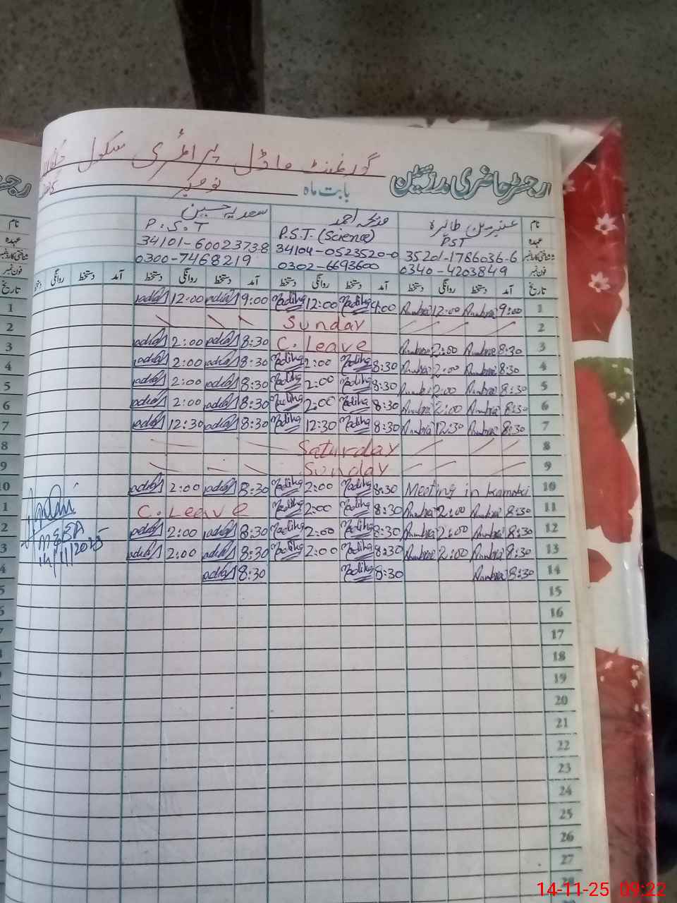 | CNIC | Full Name | Designation | R/C | Absence During Last Calender Month |