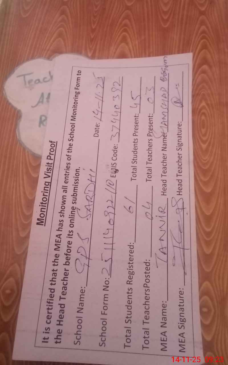 | EMIS Code: 37440392 | Name of School: GPS SARDHI | |||
