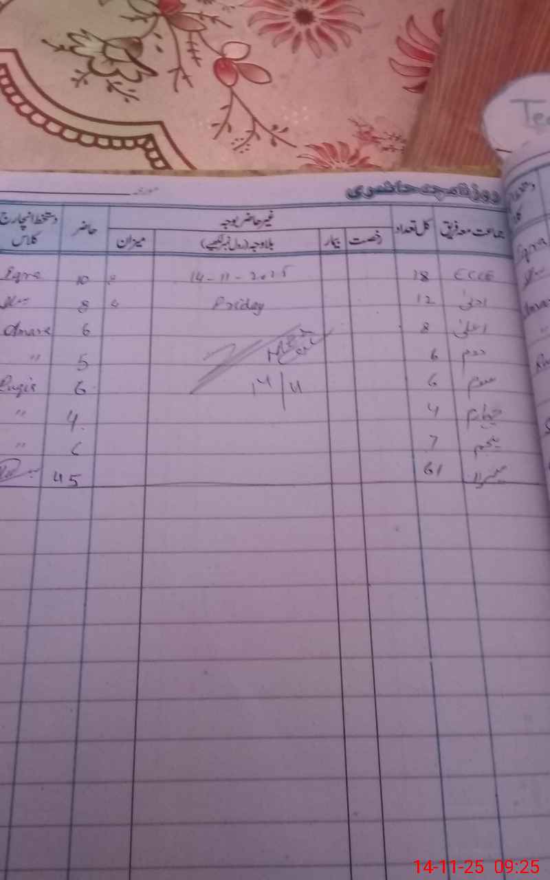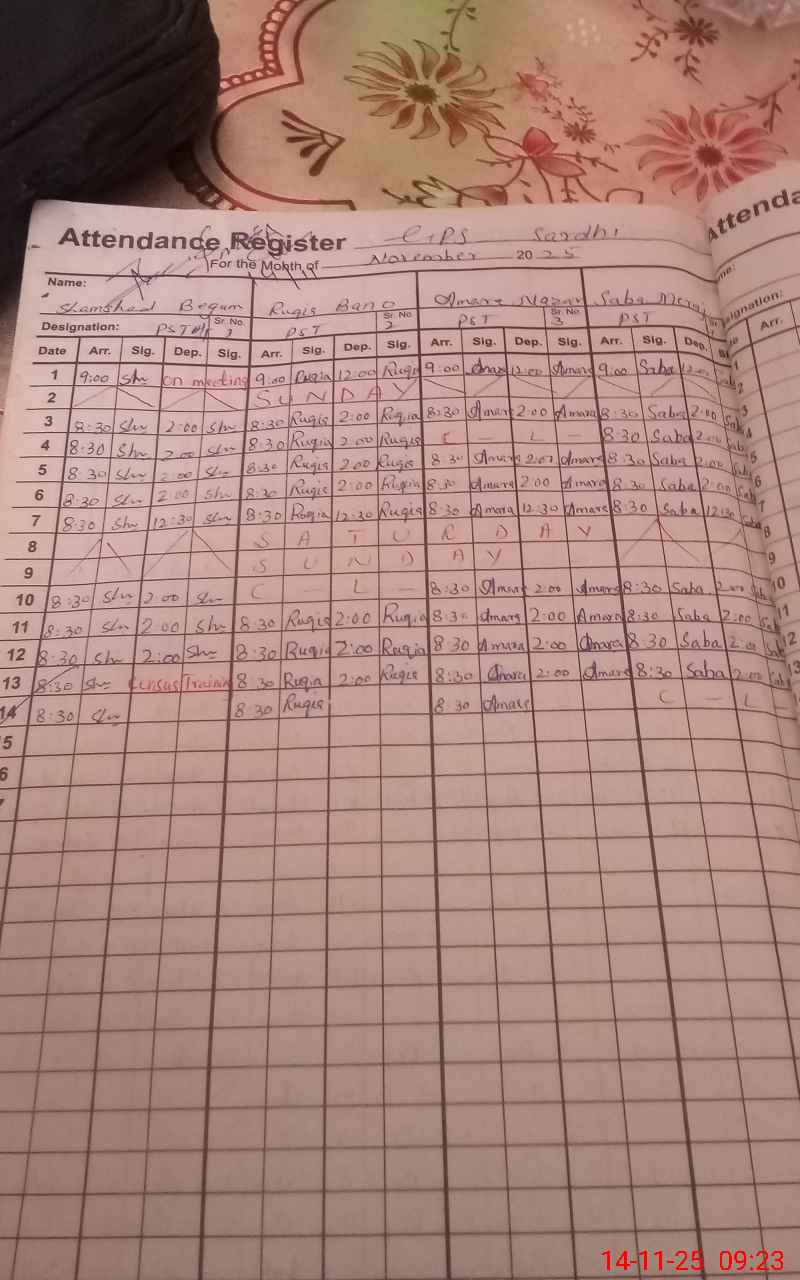 | Name: Sh**** Be**** Designation: (School Headmaster's/Headmistress's) PST Phone/Cell Number: 03**** |