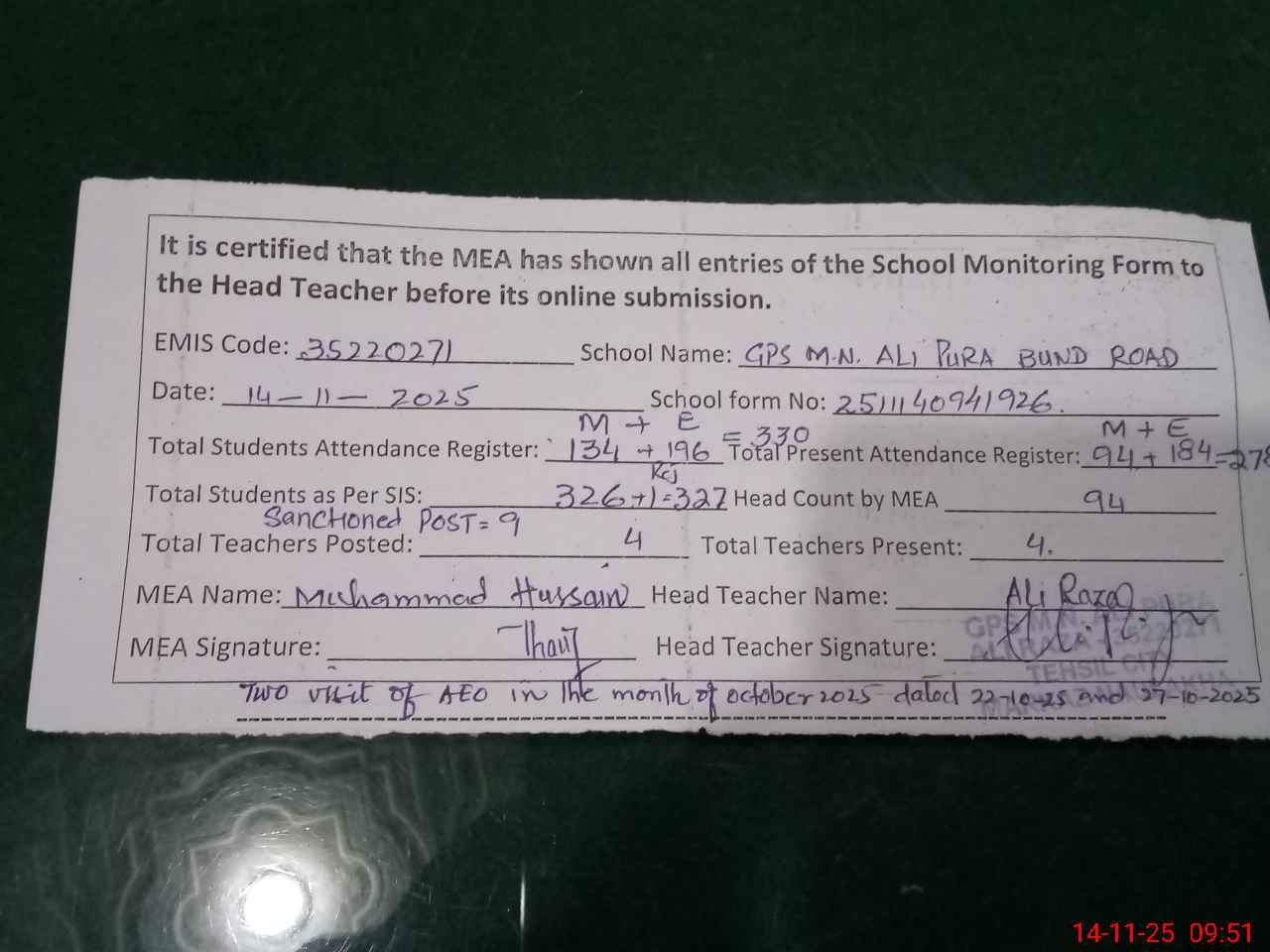 | EMIS Code: 35220271 | Name of School: GPS M.N ALI PURA BUND ROAD | |||