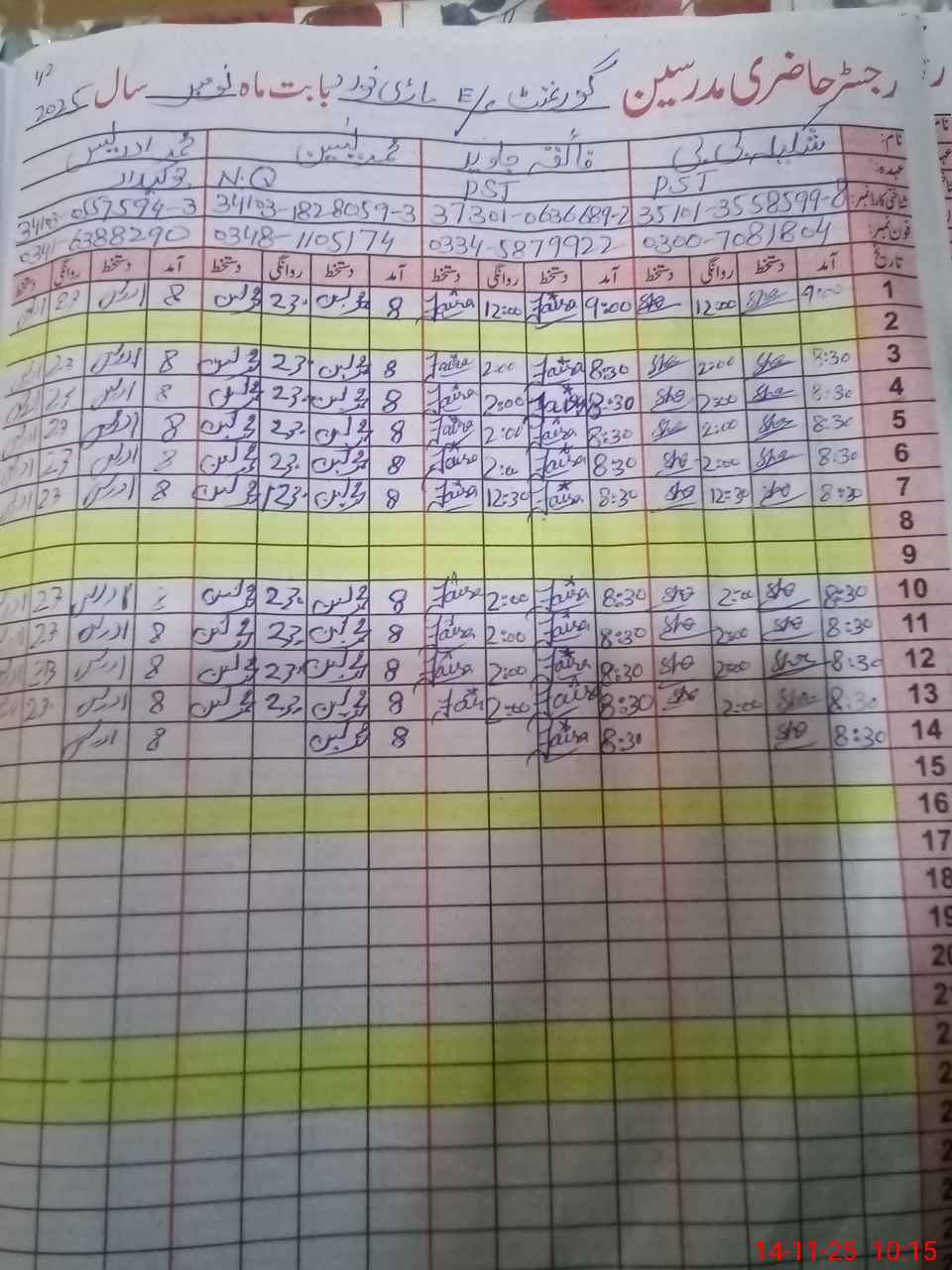 | CNIC | Full Name | Designation | R/C | Absence During Last Calender Month |