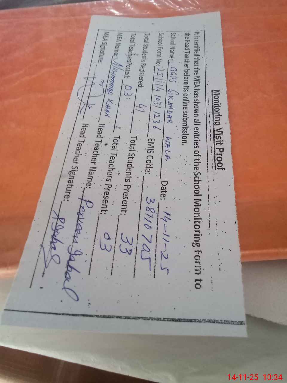 | EMIS Code: 38110705 | Name of School: GGPS SIKANDAR WALA | |||