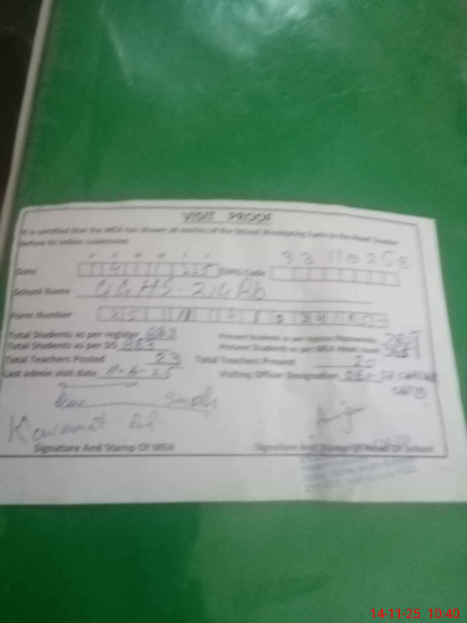 | EMIS Code: 33110258 | Name of School: GGHS CHAK 214 RB DUDUW WALA | |||