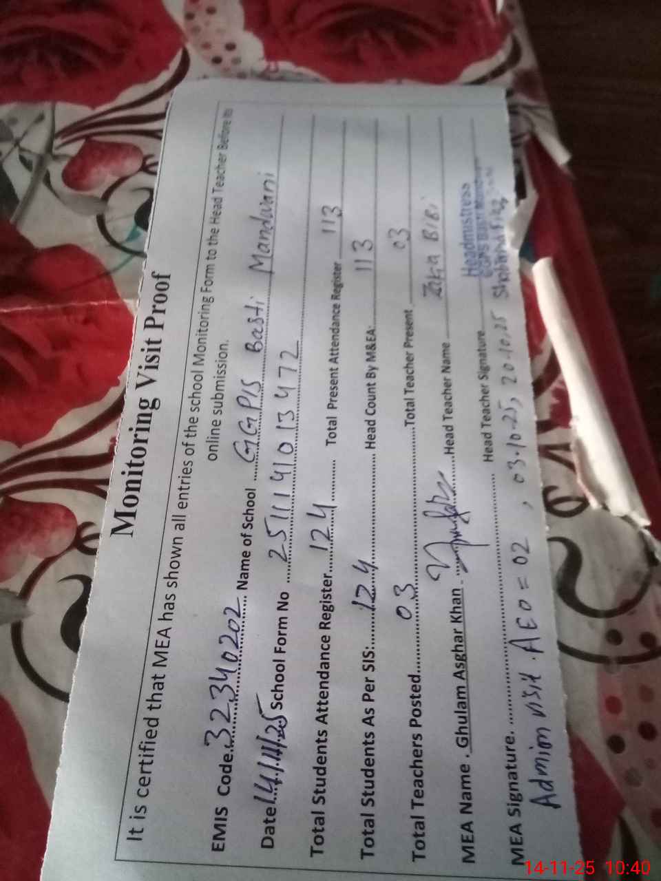 | EMIS Code: 32340202 | Name of School: GGPS BASTI MANDWANI | |||