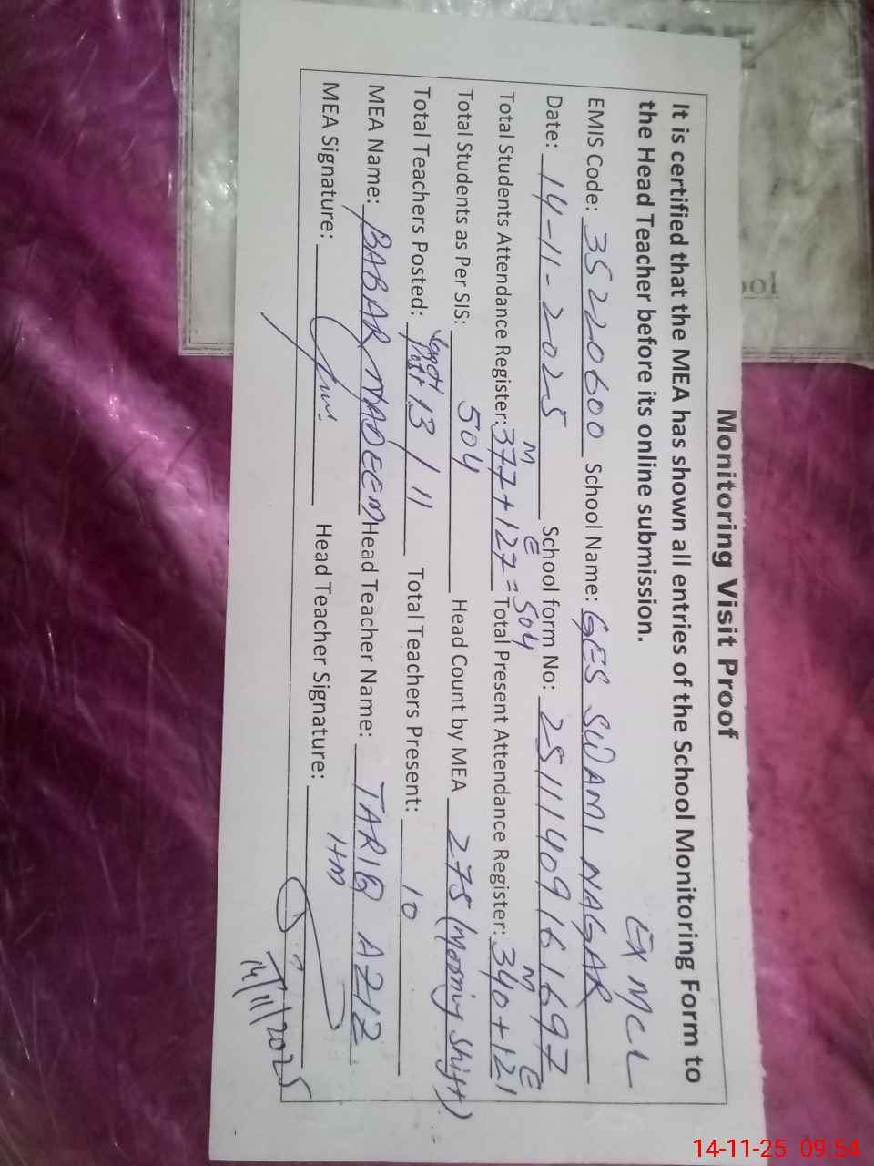 | Certified that this School was Inspected by the Undersigned MEA/DMO Today and the Information Stated Above is as Per Record. | |||||