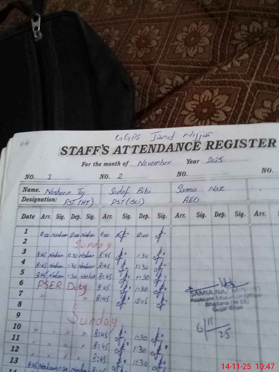 | Name: No**** Ta**** Designation: (School Headmaster's/Headmistress's) PST Phone/Cell Number: 03**** |