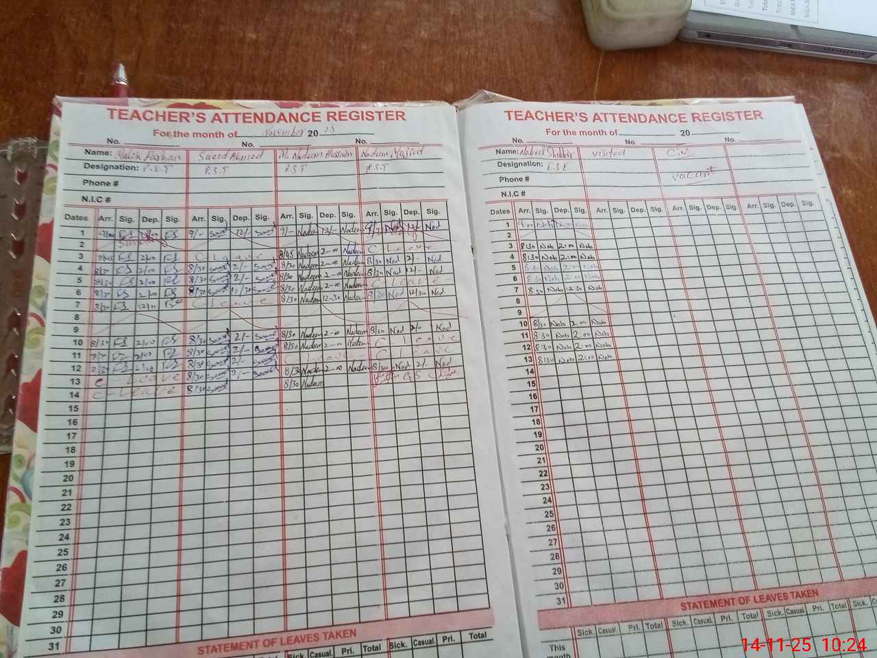 | CNIC | Full Name | Designation | R/C | Absence During Last Calender Month |