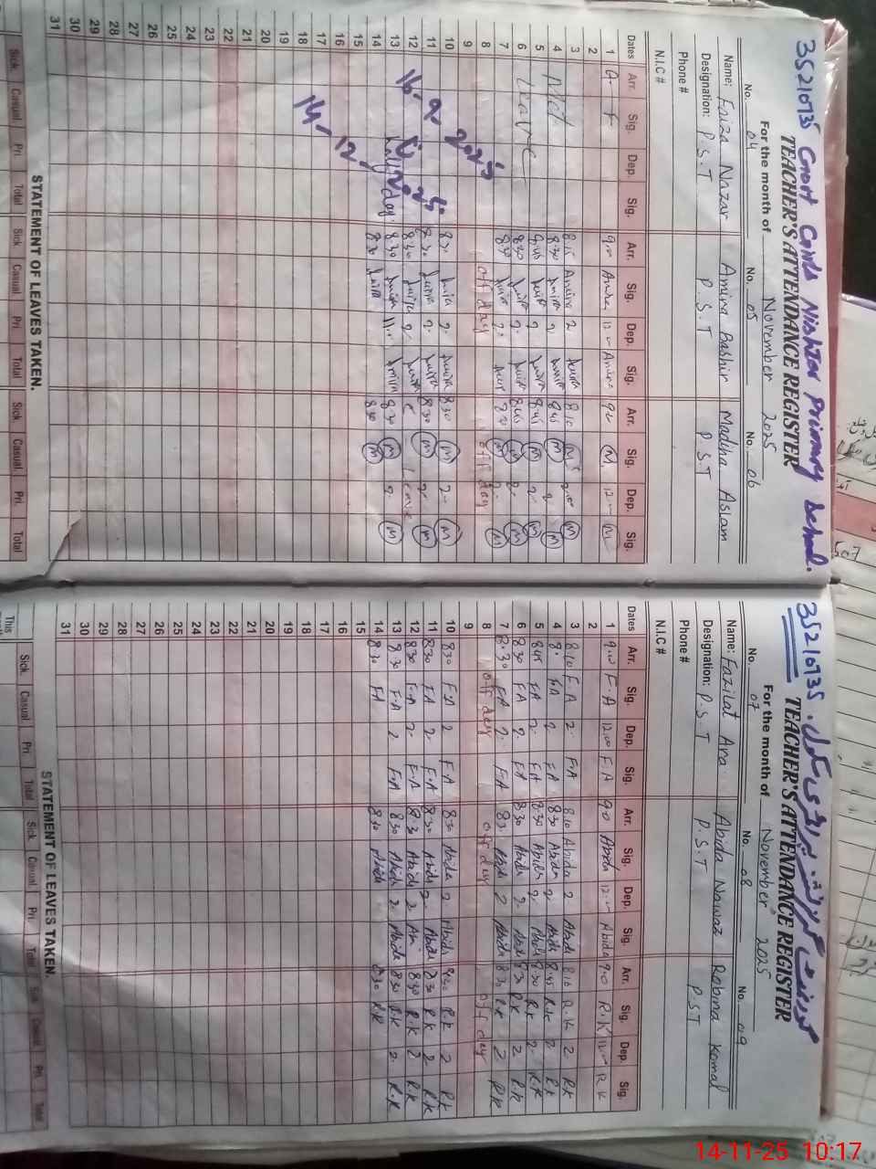 | 35**** | Fa**** Na**** | Regular | 31 | 0 | 0 | 31 | 0 | 0 | 0 | 0 | 0 | Maternity | |
