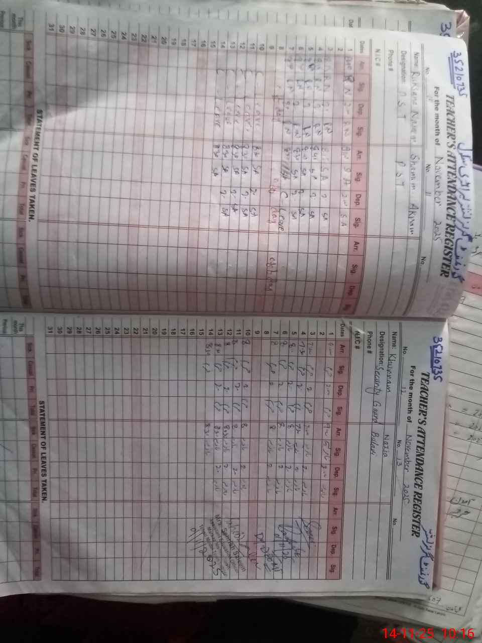 | CNIC | Full Name | Designation | R/C | Absence During Last Calender Month |