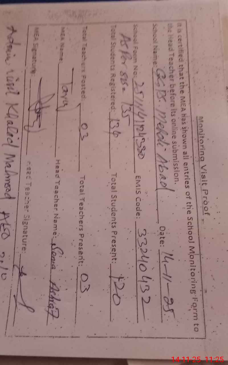 | EMIS Code: 33240432 | Name of School: GGPS MAHDI ABAD | |||