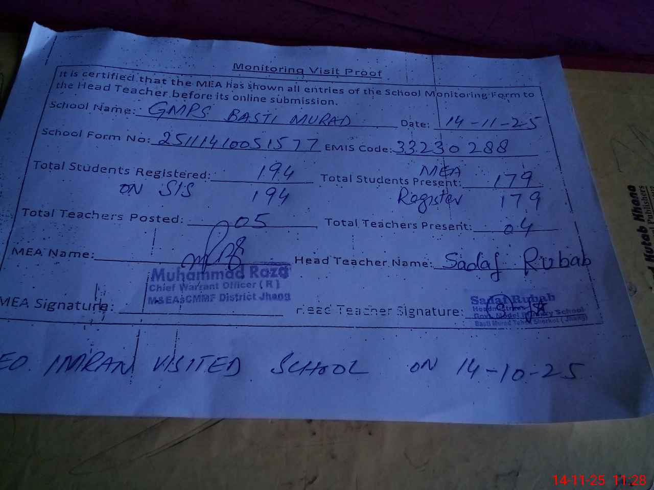 | EMIS Code: 33230288 | Name of School: GMPS BASTI MURAD | |||