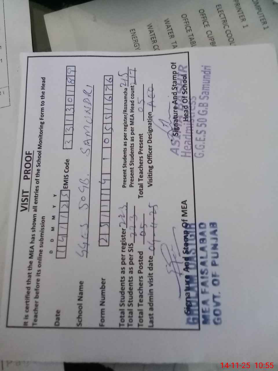 | EMIS Code: 33130189 | Name of School: GGES CHAK 50 GB SAMUNDRI | |||
