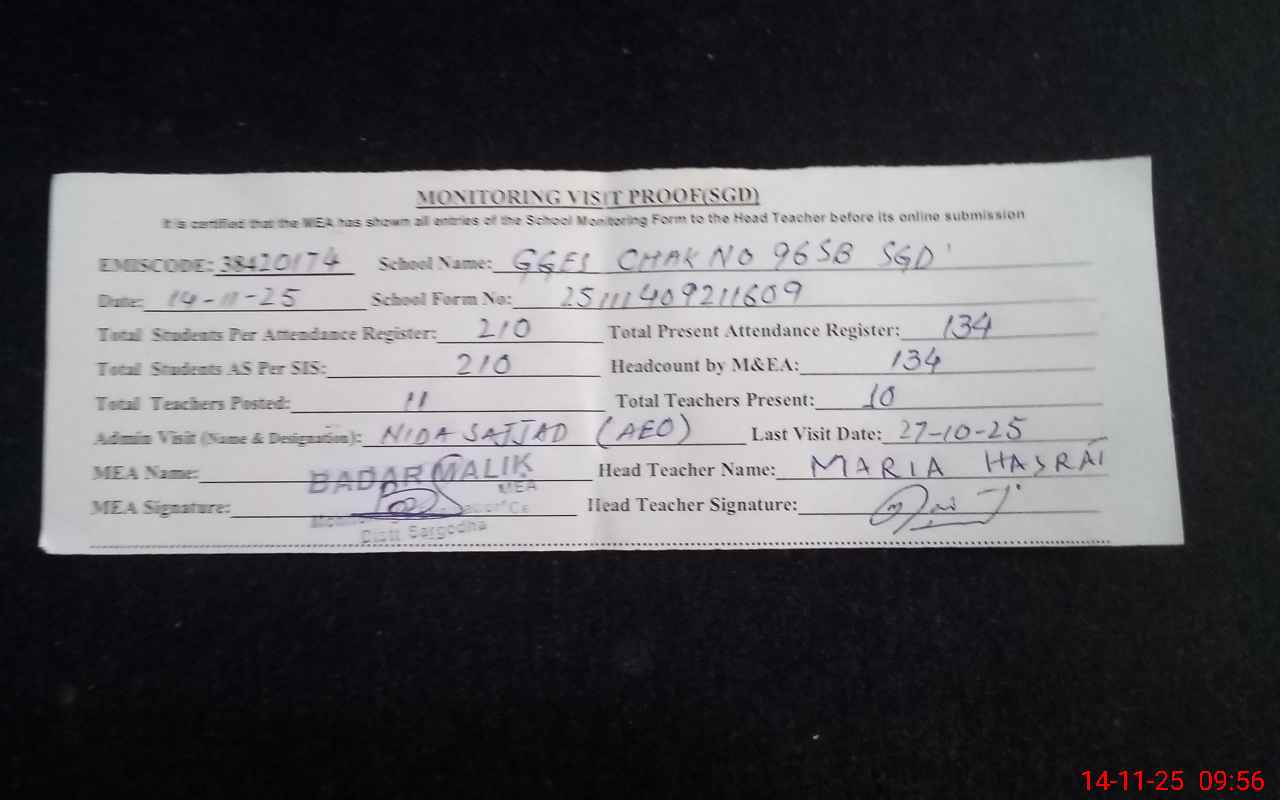 | EMIS Code: 38420174 | Name of School: GGES CHAK NO.96 SB | |||