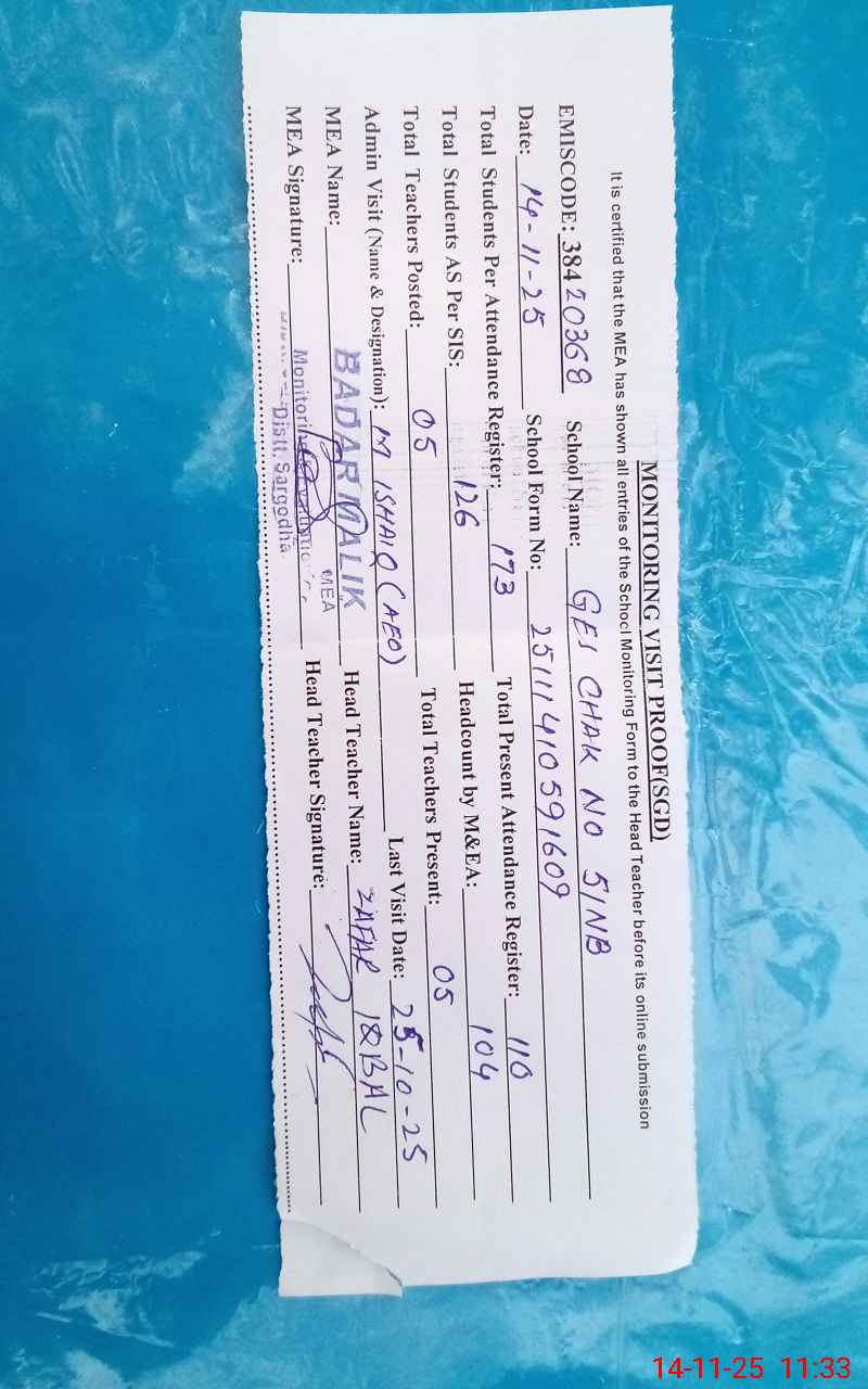 | EMIS Code: 38420368 | Name of School: GES CHAK NO.51 NB | |||