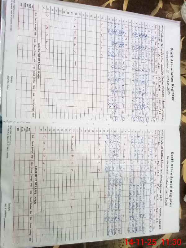 | CNIC | Full Name | Designation | R/C | Absence During Last Calender Month |