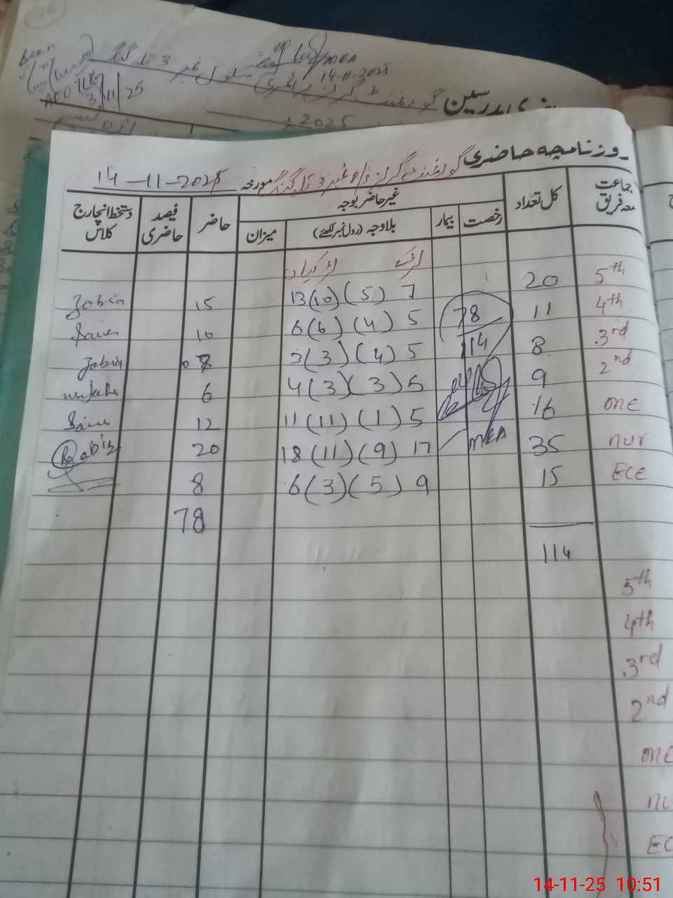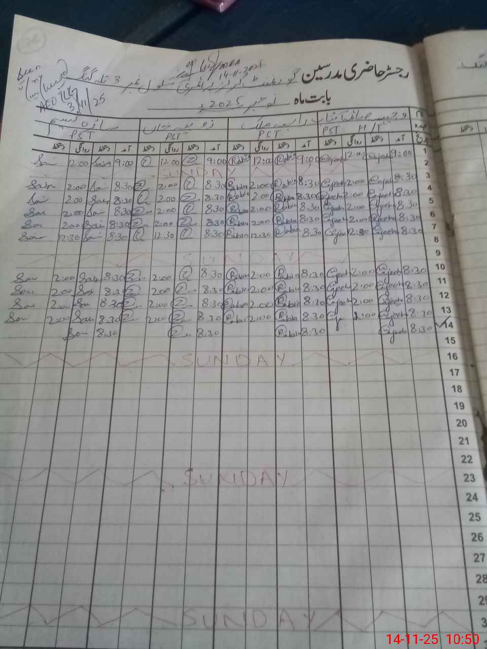 | CNIC | Full Name | Designation | R/C | Absence During Last Calender Month |