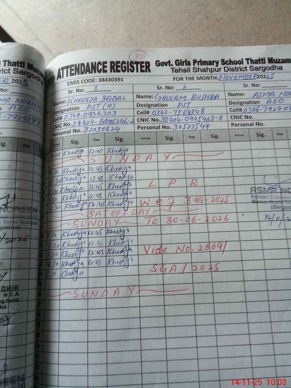 | Name: KH**** IQ**** Designation: (School Headmaster's/Headmistress's) PST Phone/Cell Number: 03**** |