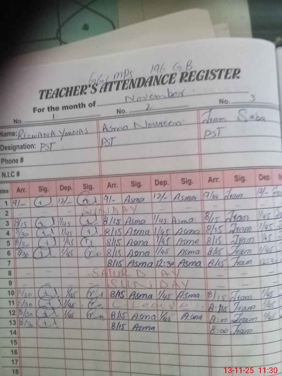| Name: SA**** CH**** Designation: (School Headmaster's/Headmistress's) PST Phone/Cell Number: 03**** |