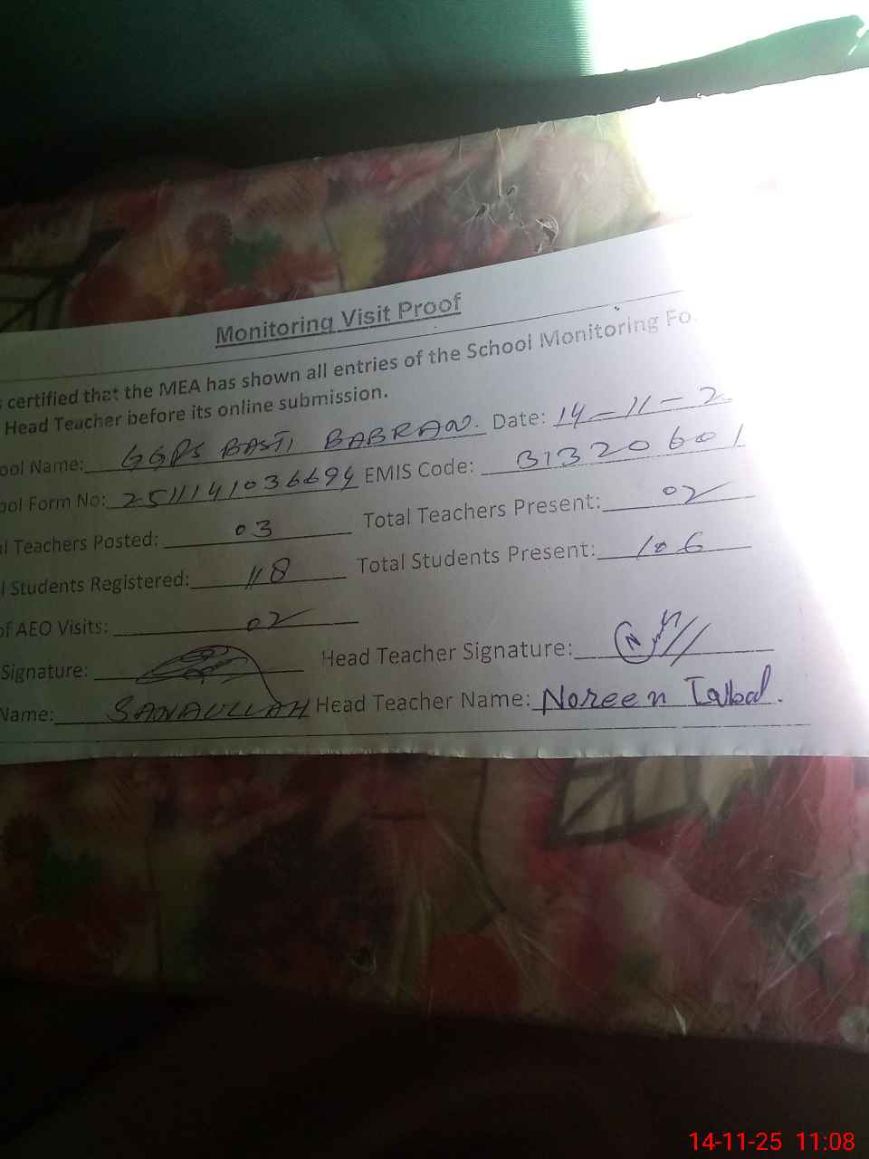 | EMIS Code: 31320601 | Name of School: GGPS BASTI BABRAN | |||