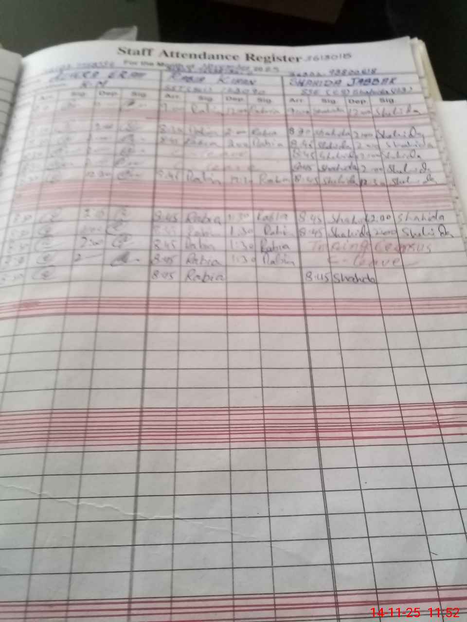 | CNIC | Full Name | Designation | R/C | Absence During Last Calender Month |